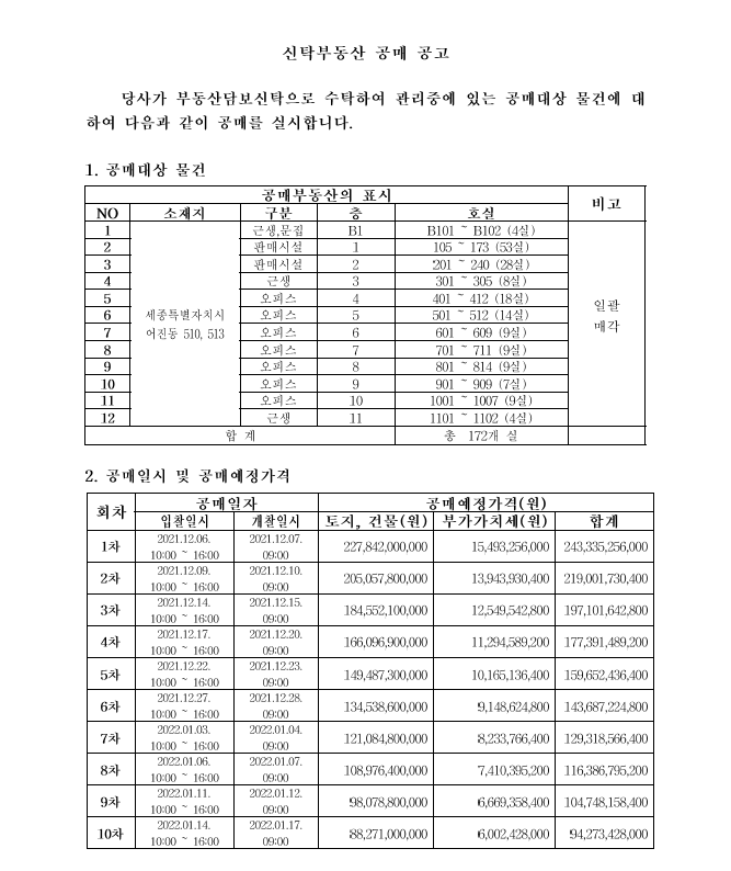 공매중지 세종시 어진동 510, 513번지 엠브릿지 B102호 외 171개호실 일괄매각