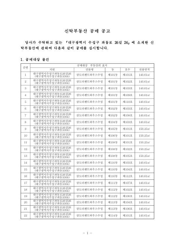 진행중 대구광역시 수성구 파동로 26길 26 제101동 제101호 외 35개 호실 개별공매