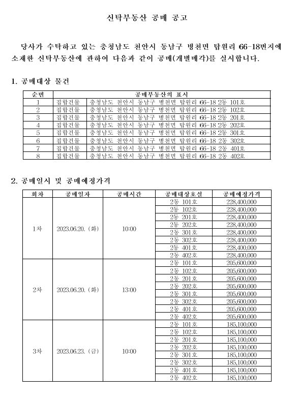 유찰 충남 천안시 동남구 병천면 탑원리 66-18 다세대주택 2동 101호 외7호실 개별매각 (2차)