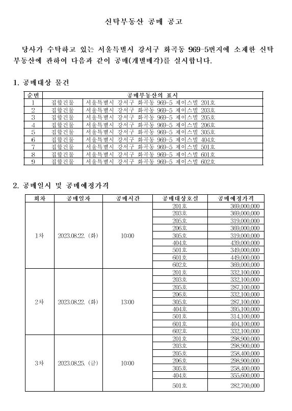 유찰 서울 강서구 화곡동 969-5 제이스빌 공동주택 9세대 개별매각
