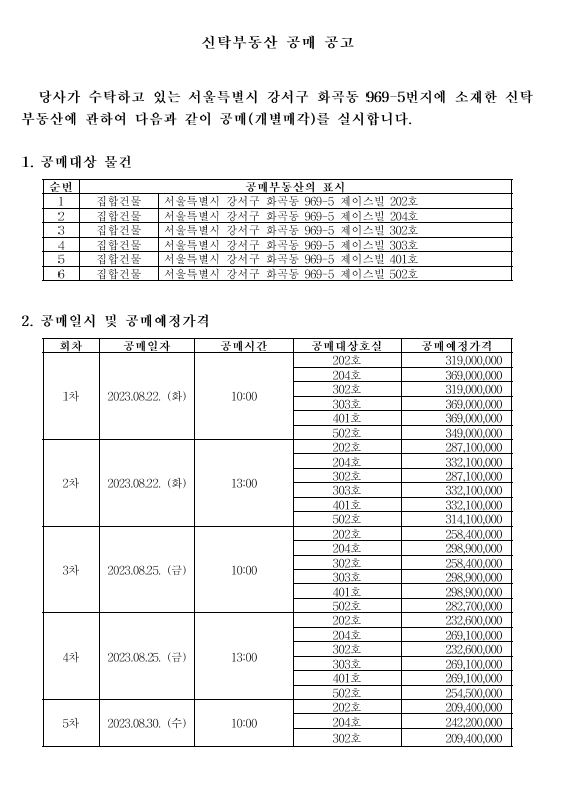 유찰 서울 강서구 화곡동 969-5 제이스빌 공동주택 6세대 개별매각