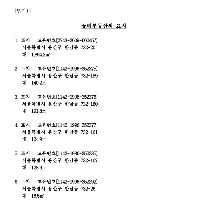 공매중지 서울특별시 용산구 한남동 732-20 외 5필지(총 6필지) 대지 공매