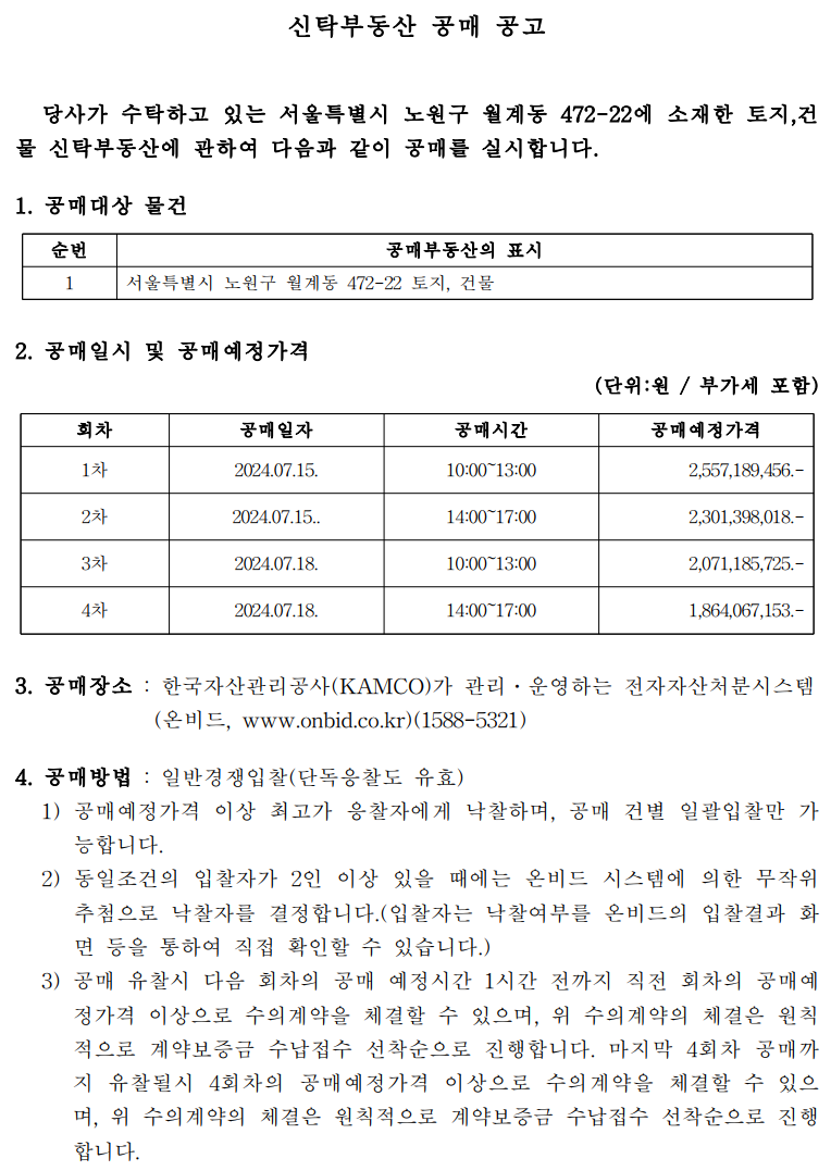 공매중지 서울특별시 노원구 월계동 472-22 토지,건물 공매