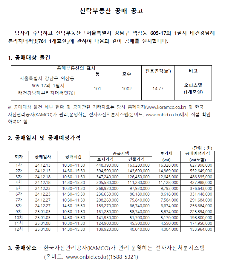 낙찰 서울특별시 강남구 역삼동 605-17 태건강남헤븐리치더써밋761 ,1002호 (오피스텔)