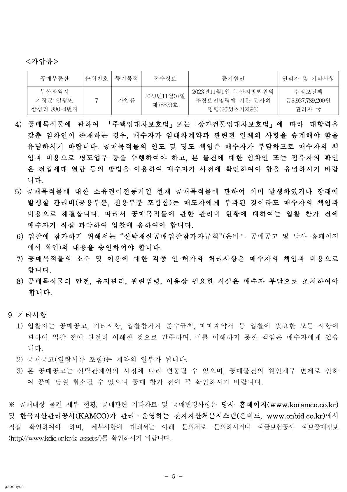 진행중 부산광역시 기장군 일광면 삼성리 880-4번지 토지 매각