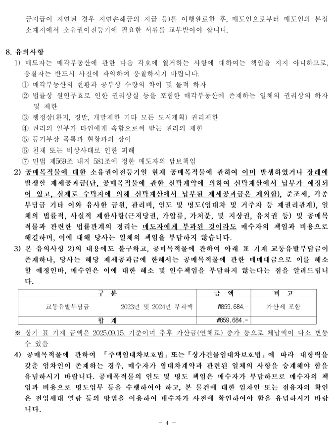 ※ 당사는 등기부상 최초 1회에 한하여 소유권 이전등기 업무만을 수행하고 이를 제외한 매매계약과 관련한 매도인으로서의 일체의 의무 및 책임(매매목적물의 모든 법률적·사실적 하자 또는 장애에 대한 매도인으로서의 의무 및 책임, 불법행위책임, 채무불이행책임 및 하자담보책임을 포함하되 이에 한정되지 않음)을 부담하지 않음을 안내드립니다.