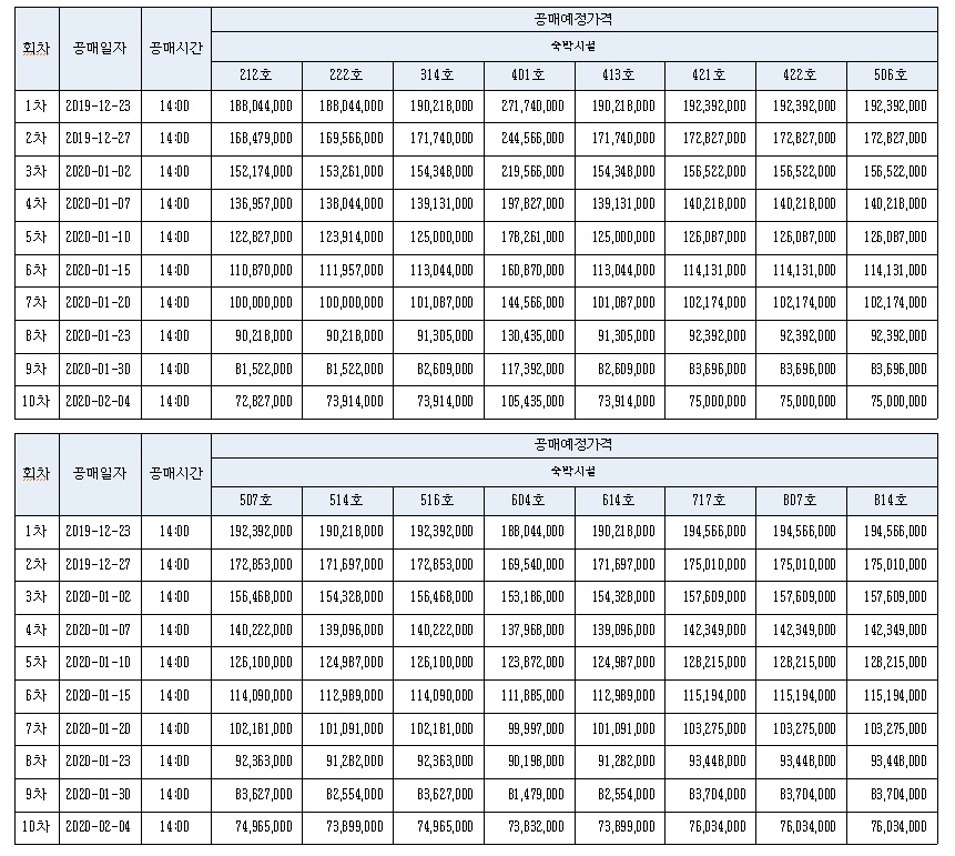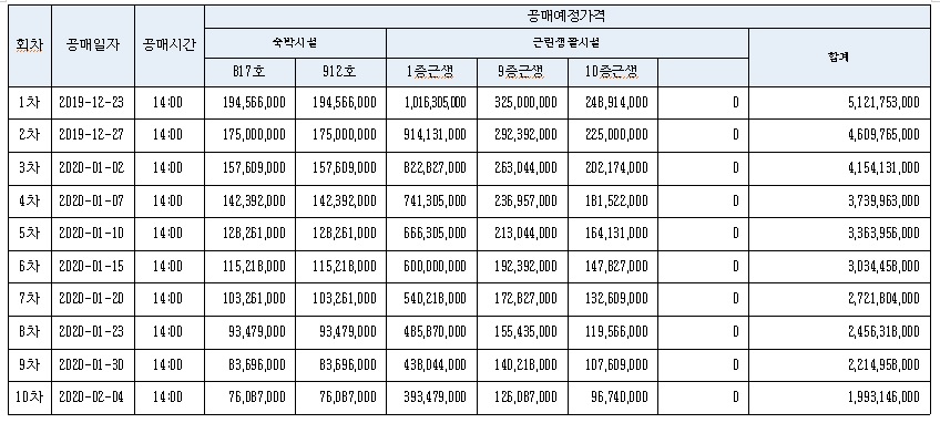 2. 공매일시 및 공매예정가격(단위 : 원, VAT 포함)